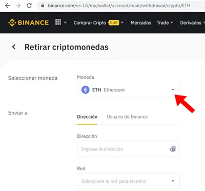 2. Sobre el combo “Seleccionar moneda” elegir ETH Ethereum