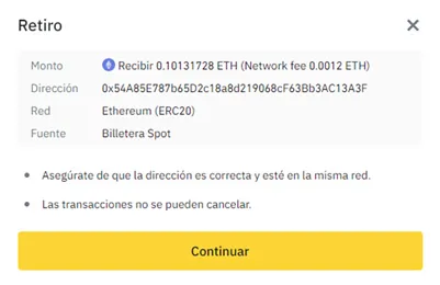ATENCION: en el caso de ser la primera vez que realizas un retiro es posible que la plataforma realice unas preguntas de seguridad, en este caso Binance. En el artículo Binance, cuestionario de verificación antes de realizar retiros mostramos un ejemplo del cuestionario realizado junto con las respuestas adecuadas.