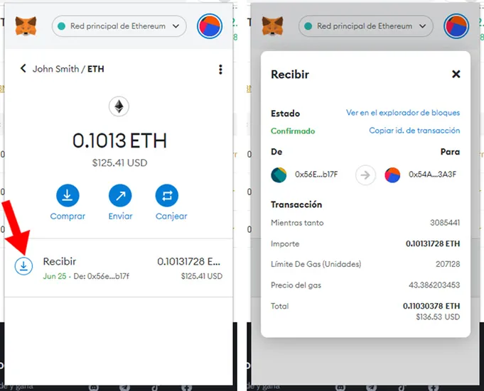 Red Ethereum – Enviar fondos de ETH a tu wallet Metamask