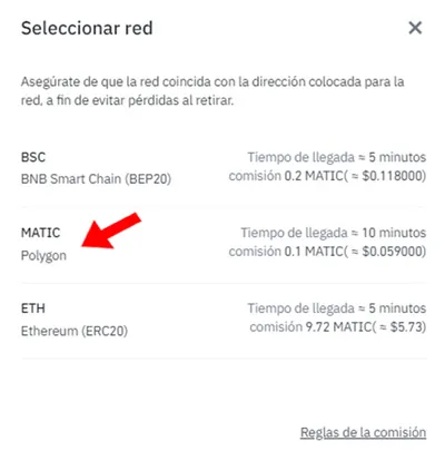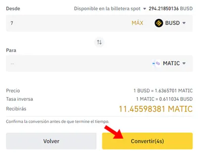 - 4. Red Polygon - Convertir stablecoin a MATIC en Binance