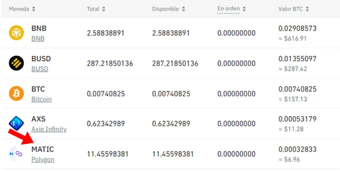 Red Polygon - Convertir stablecoin a MATIC en Binance