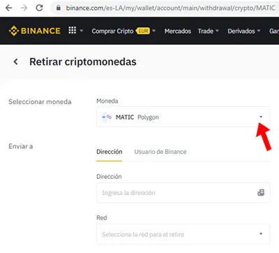 2. Sobre el combo “Seleccionar moneda” elegir MATIC