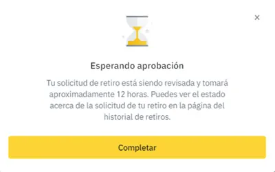 10. Solo en ocasiones podría mostrar una advertencia como esta diciendo que la solicitud de retiro puede demorar aproximadamente 12 horas. Muchas veces, a pesar de esta advertencia, la solicitud suele completarse en unos minutos