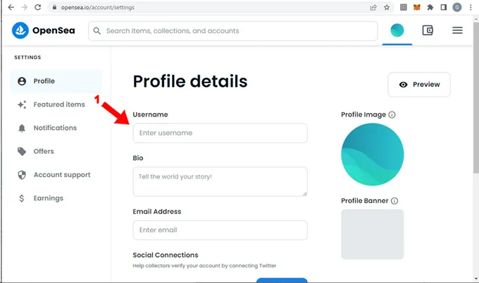 Personalizar tu cuenta en OpenSea