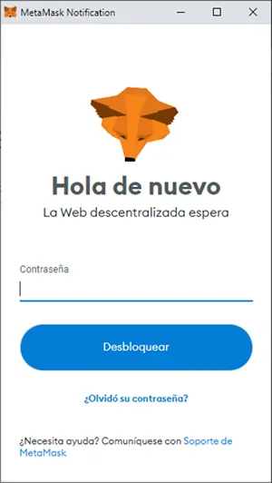 3. Solicita la contraseña para desbloquear la wallet integrada al browser. Si todavía no has integrado Metamask a tu browser necesitas leer el artículo “La guía definitiva de la wallet Metamask para guardar tus NFTs y criptomonedas”