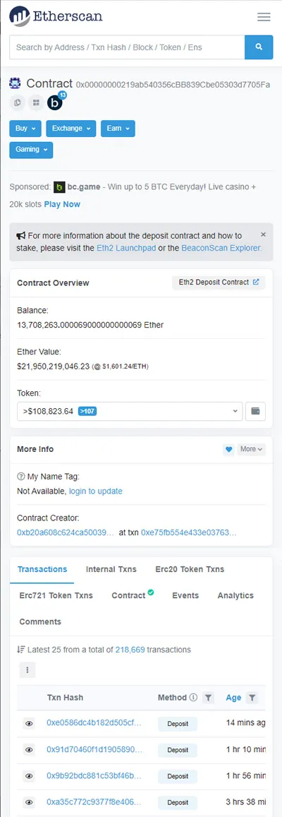 As can be seen in the capture at the time of writing the article, the balance of this wallet is 13,708,263 Ethereum, the equivalent of approximately 21 billion US dollars of disused tokens that were later minted on the layer “The Beacon change”. In other words, simulated ETH tokens staking on PoW, the prelude to PoS.